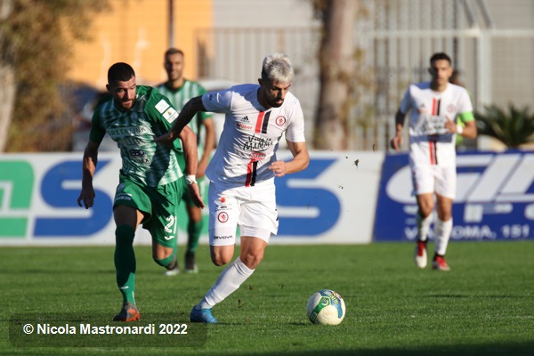 Andrea Bussaglia (Monopoli) tackle on Marco Frigerio (Foggia)