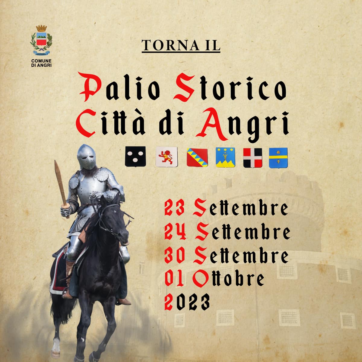 Dopo l’ultima edizione del 2019, prima della pandemia, tornano finalmente le rievocazioni storiche del “Palio Storico Città di Angri”, un evento che durante il primo mandato abbiamo ritenuto doveroso istituzionalizzare per l’importanza storica e culturale.