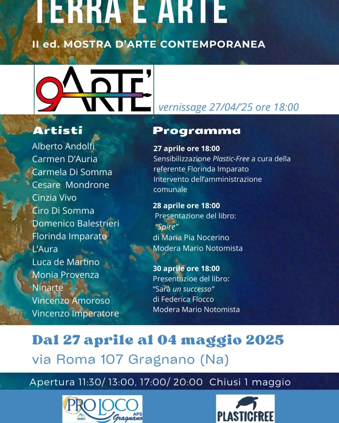 L’iniziativa, promossa da Pro Loco Gragnano APS in collaborazione con PlasticFree, celebra il legame indissolubile tra l’arte e il nostro pianeta, invitando il pubblico a riflettere sulla sostenibilità ambientale attraverso il linguaggio visivo contemporaneo.