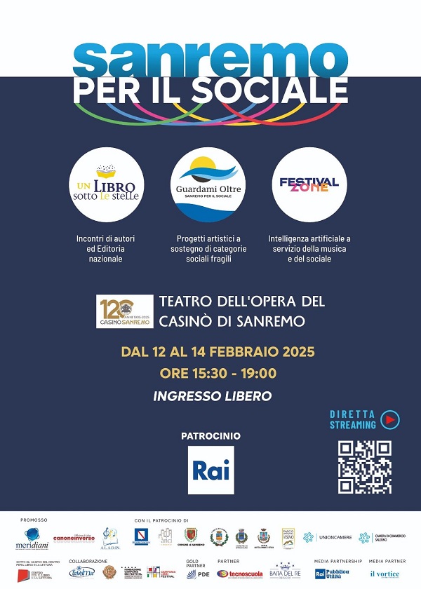 𝗦𝗔𝗡𝗥𝗘𝗠𝗢 𝗣𝗘𝗥 𝗜𝗟 𝗦𝗢𝗖𝗜𝗔𝗟𝗘 ritorna quest’anno a Sanremo tra le iniziative collaterali al Festival della Canzone Italiana, patrocinata dalla RAI e dal Comune di Sanremo.