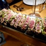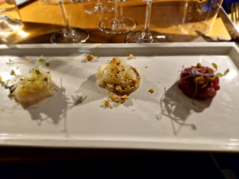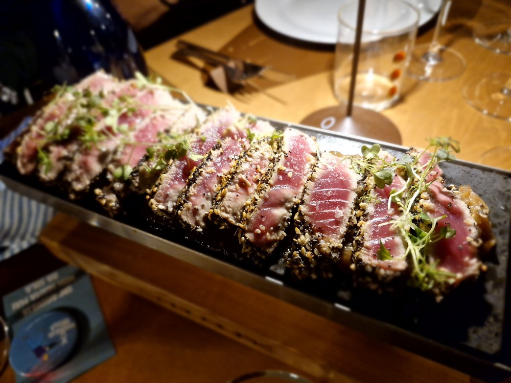 - Il Tonno tataki con cipolle di Tropea ha incontrato il Speziale Verduno Pelaverga Doc 2021, un vino che esalta le note speziate e fruttate, anche se la cipolla caramellata tende a prevalere un po’ troppo sul pesce.