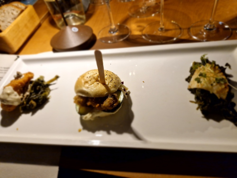 - Infine, il Mini bun con ostrica fritta: una scommessa azzardata che diverte con il suo equilibrio tra la morbidezza del pane e la croccantezza dell’ostrica.